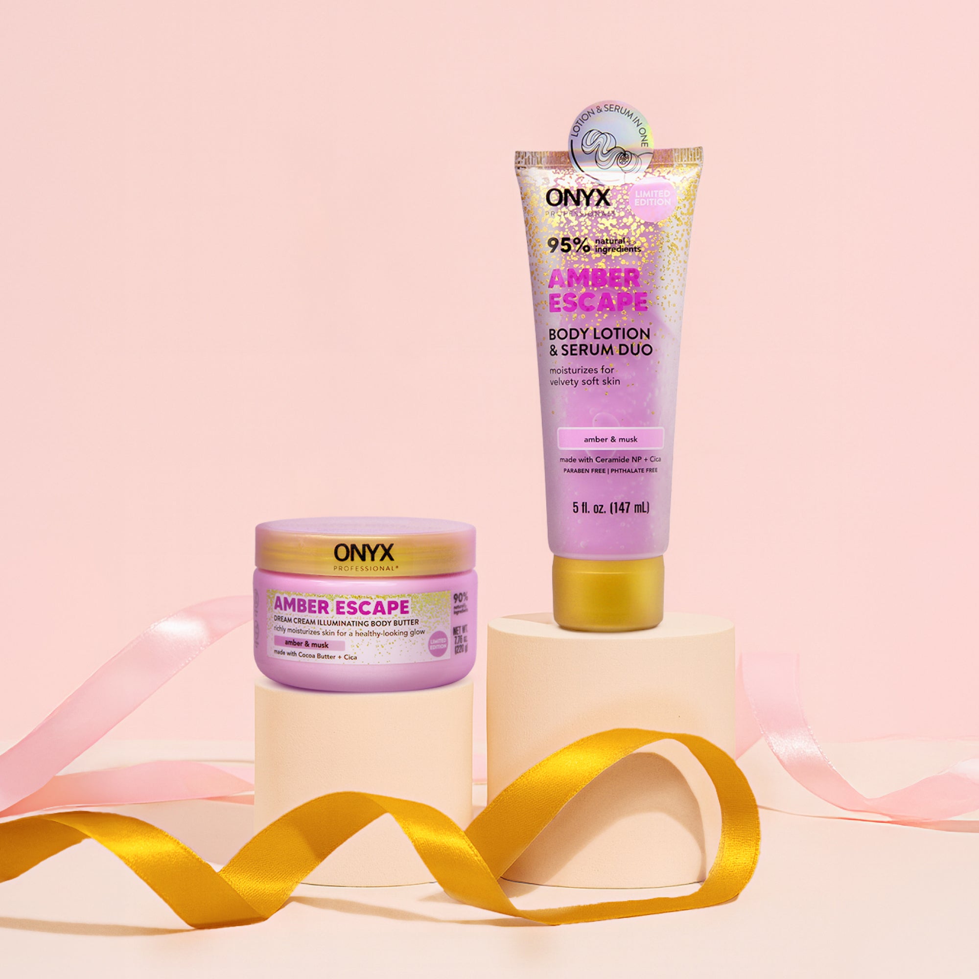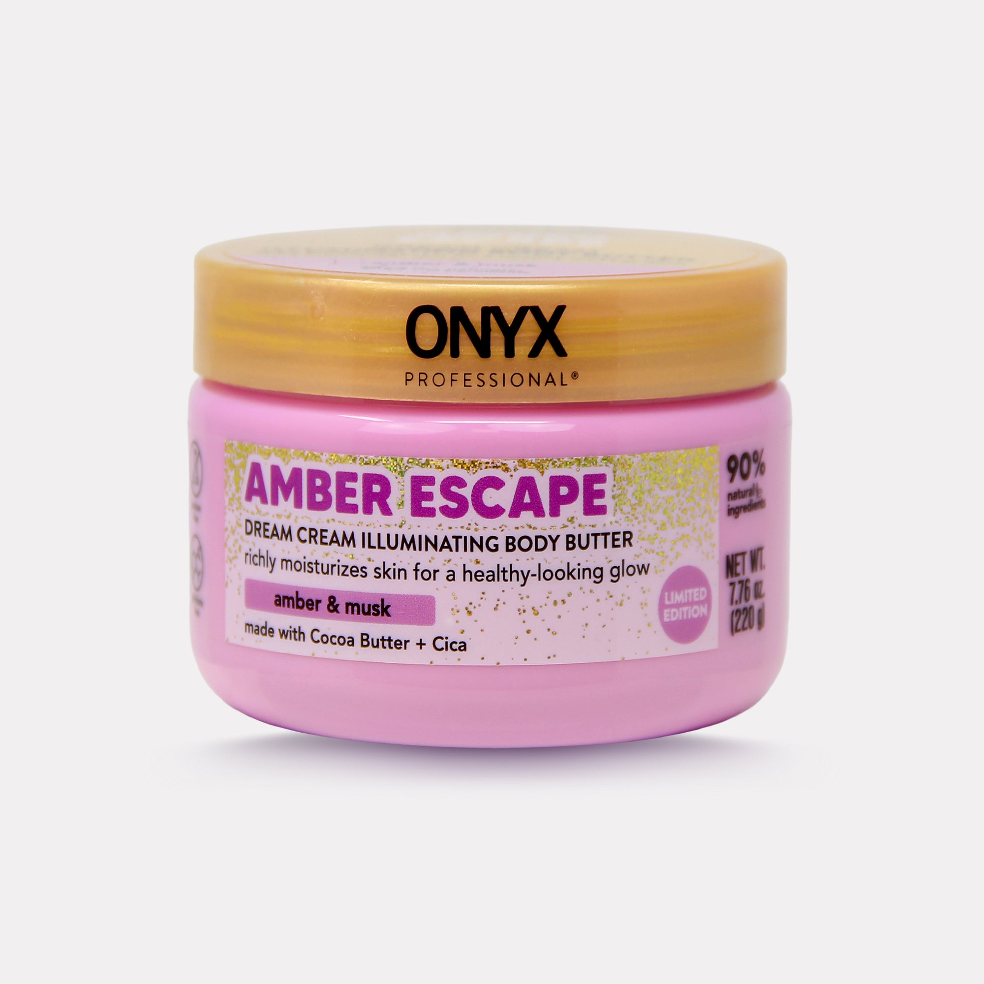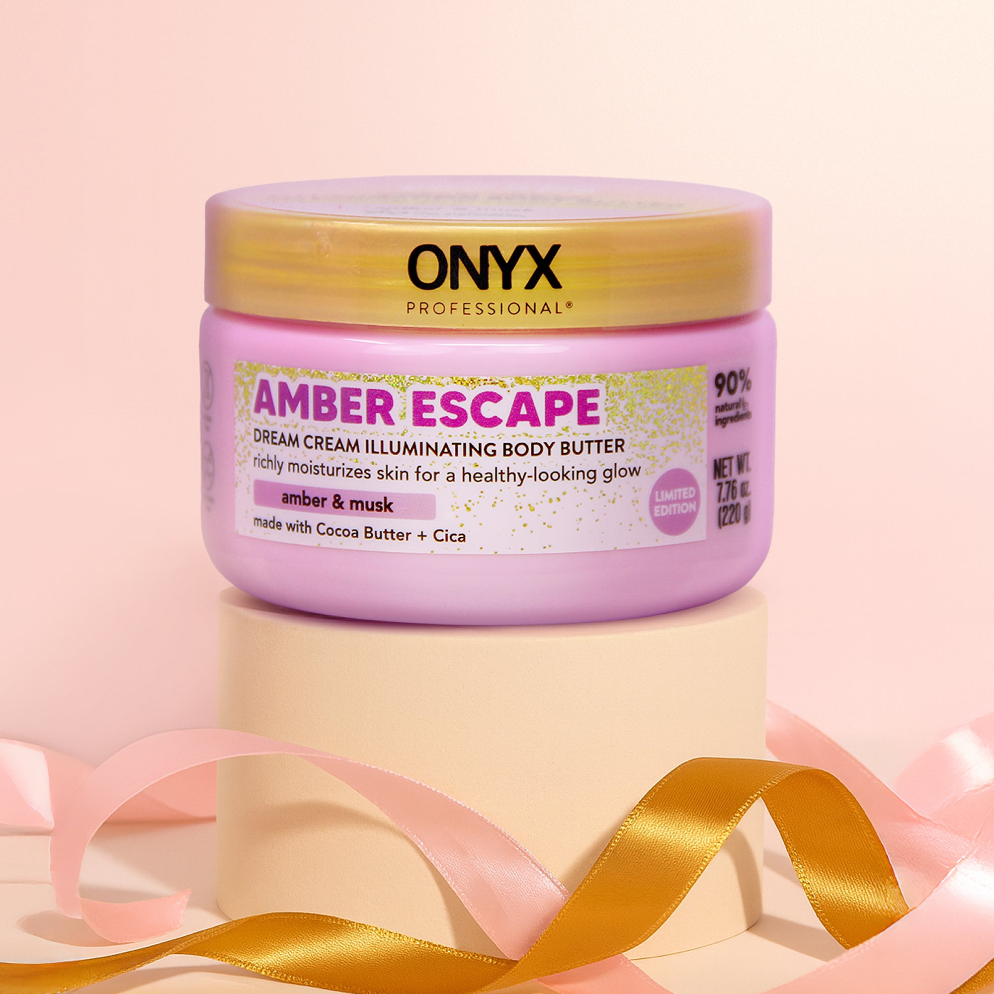 Meet the ONYX Professional Butter Bliss Illuminating Body Butter in Amber Escape, featuring our new whipped oil formula that delivers intense hydration and a radiant, illuminating finish. This rich body cream melts into the skin, leaving it soft, smooth, and glowing without feeling heavy.