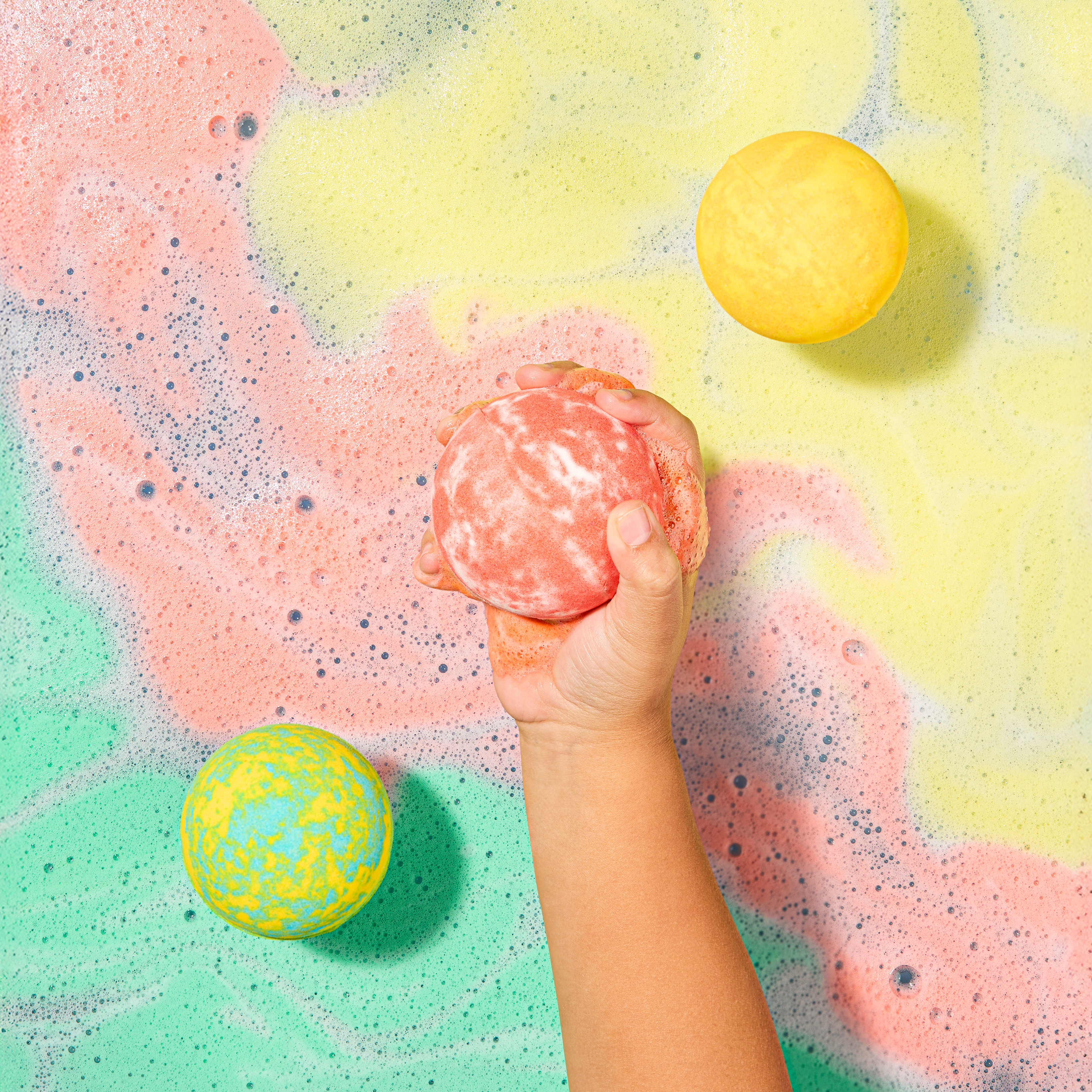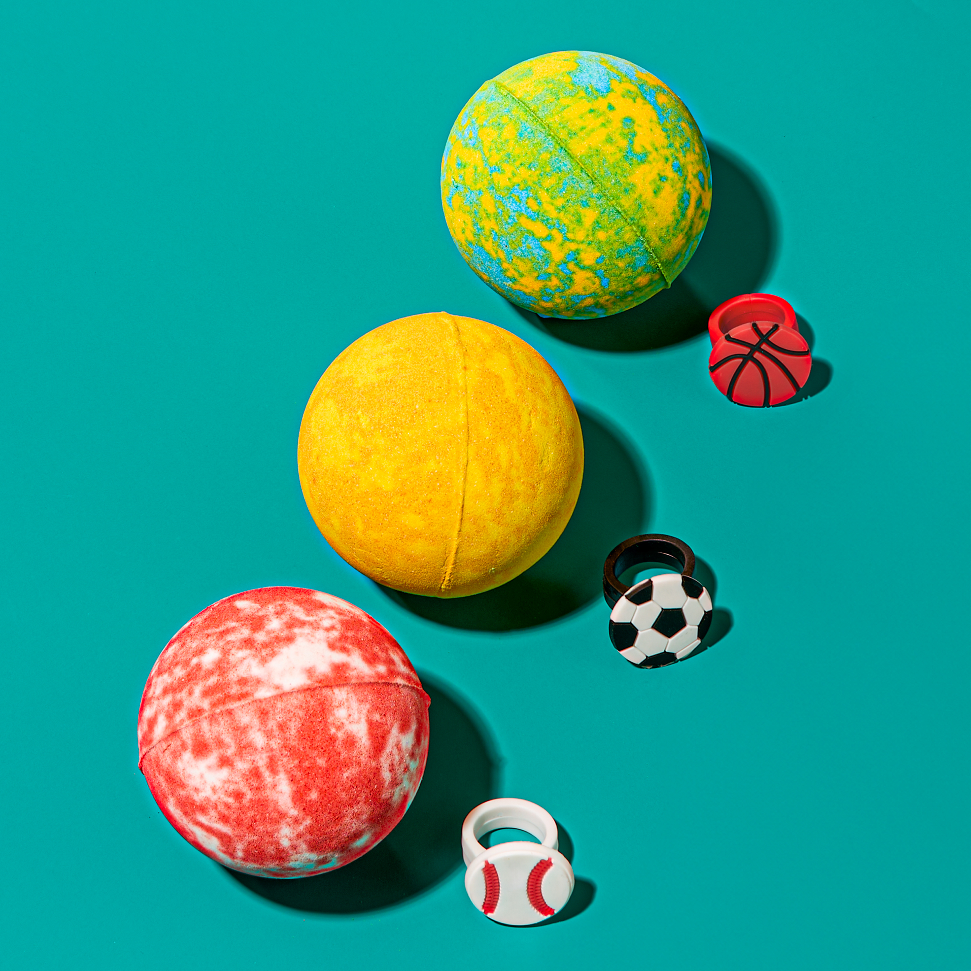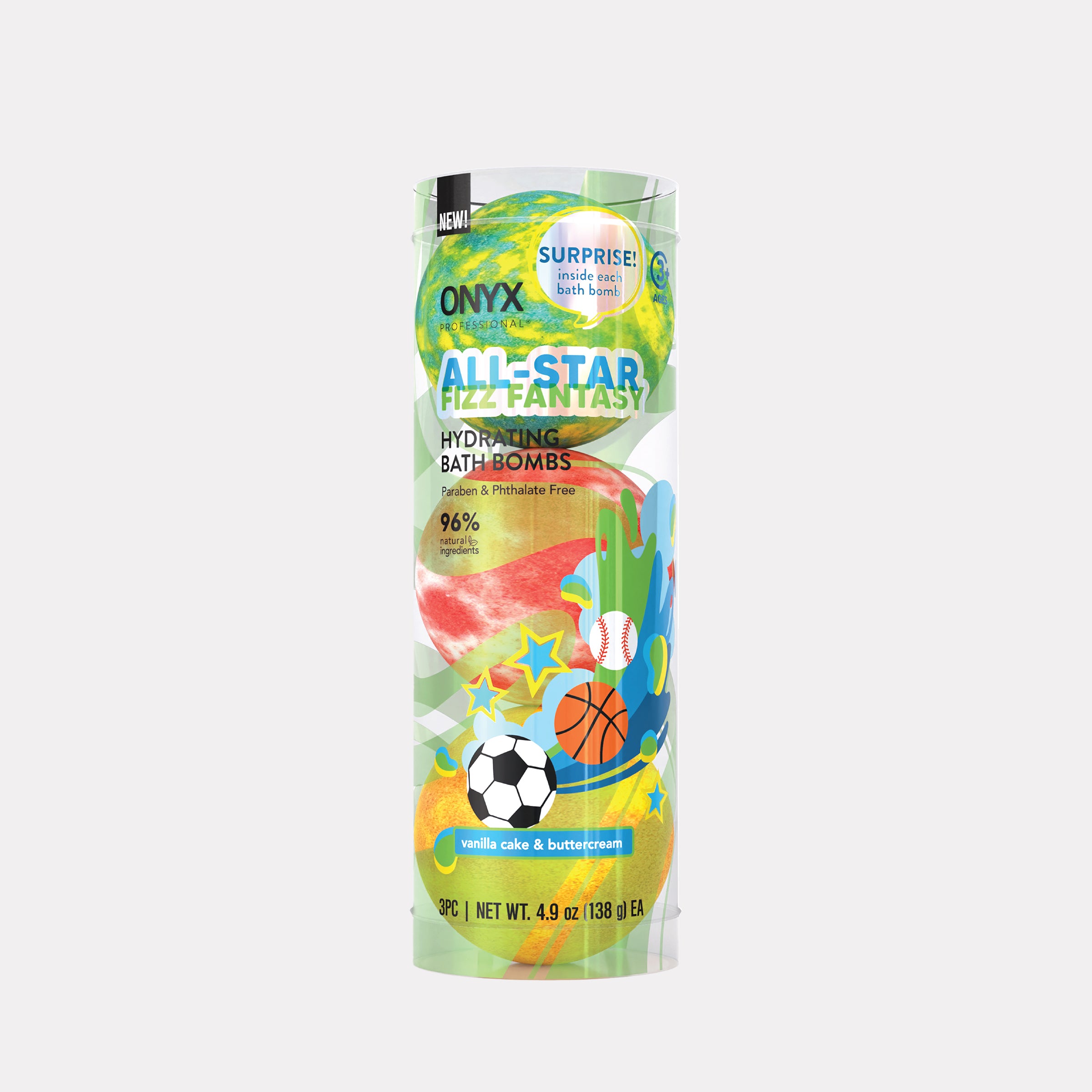 Make bath time an all-star experience with the All-Star Fizz Fantasy Bath Bomb Tower! Bursting with the delicious scent of Vanilla Cake & Buttercream, each bath bomb fizzes into a swirl of colorful magic. And the best part? A surprise toy is hidden inside every bath bomb, turning every soak into an exciting treasure hunt. With 96% natural nourishing ingredients, these bath bombs keep skin soft, smooth, and refreshed. Perfect for gifting or adding a little everyday victory to bath time!
