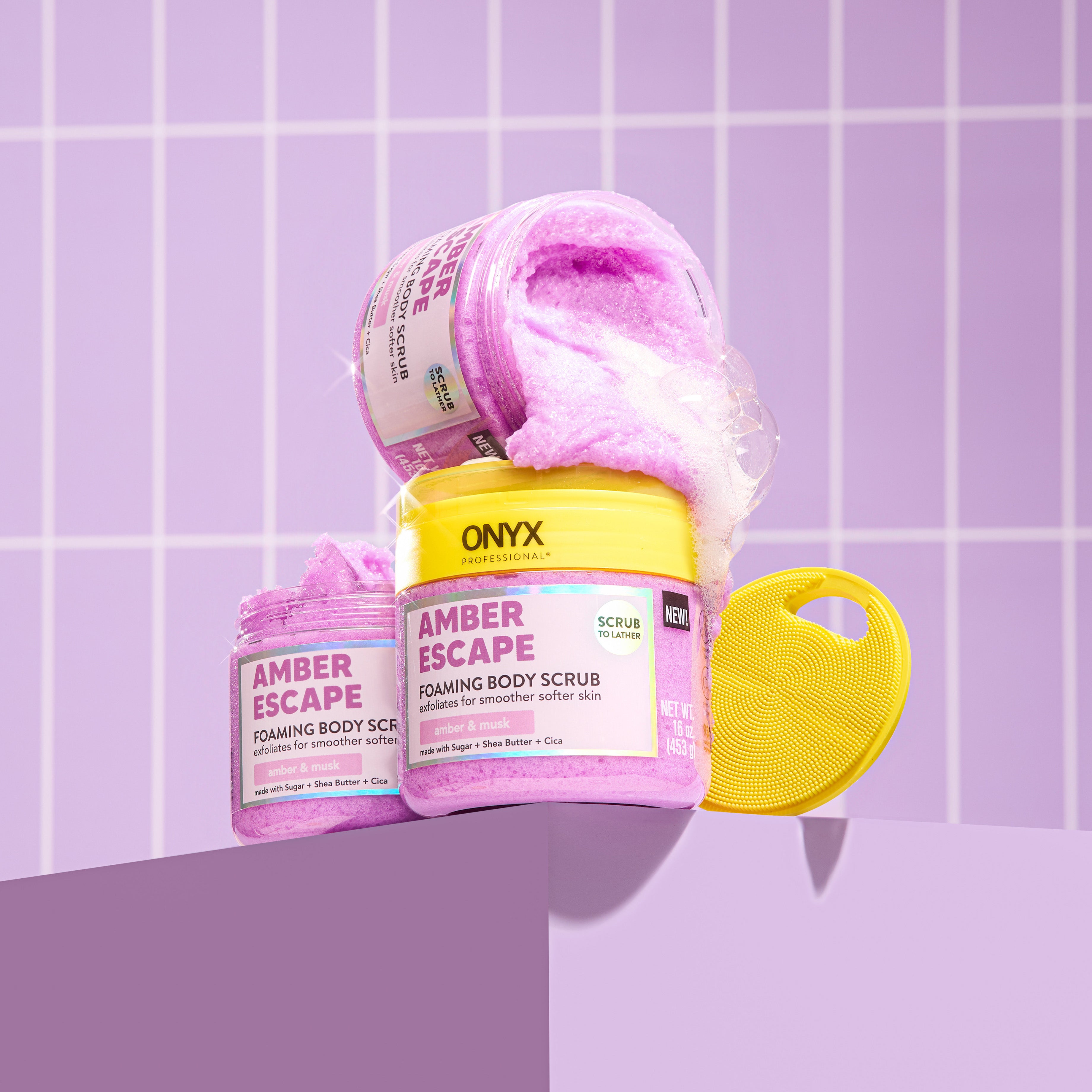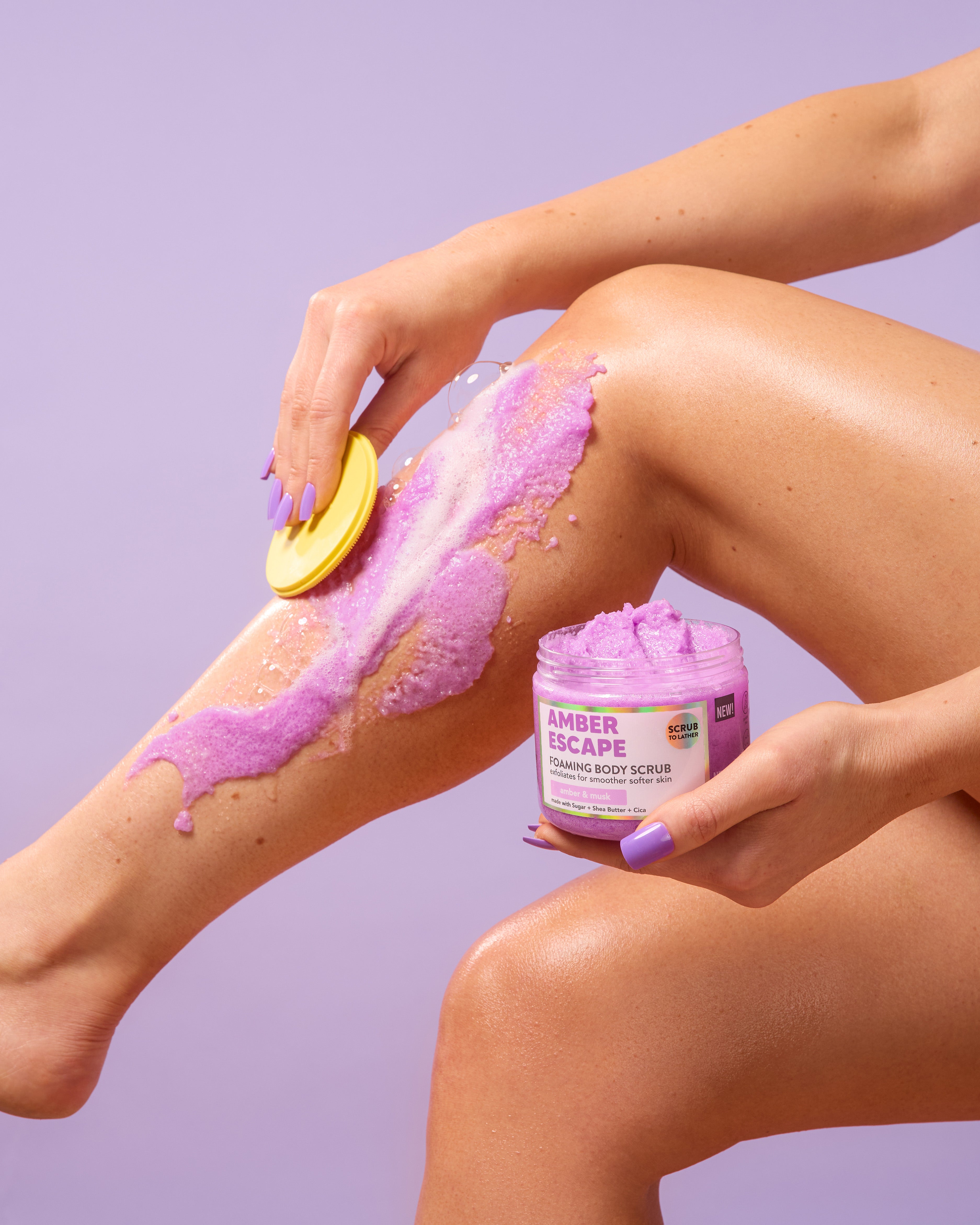 Indulge in the ultimate self-care experience with our Amber Escape Foaming Sugar Body Scrub, featuring an alluring Amber and Musk fragrance that transports your senses to a romantic evening in the heat of summer. Featuring nourishing ingredients like Shea Butter and Cica, this foaming experience is truly skincare for your body. With every use, you'll reveal skin that's softer and smoother. But that's not all – we've taken it a step further by including a gentle handheld antibacterial scrubber within the lid. This tool enhances the foaming sensation and provides a deep, invigorating cleanse that leaves your skin feeling rejuvenated and thoroughly pampered.