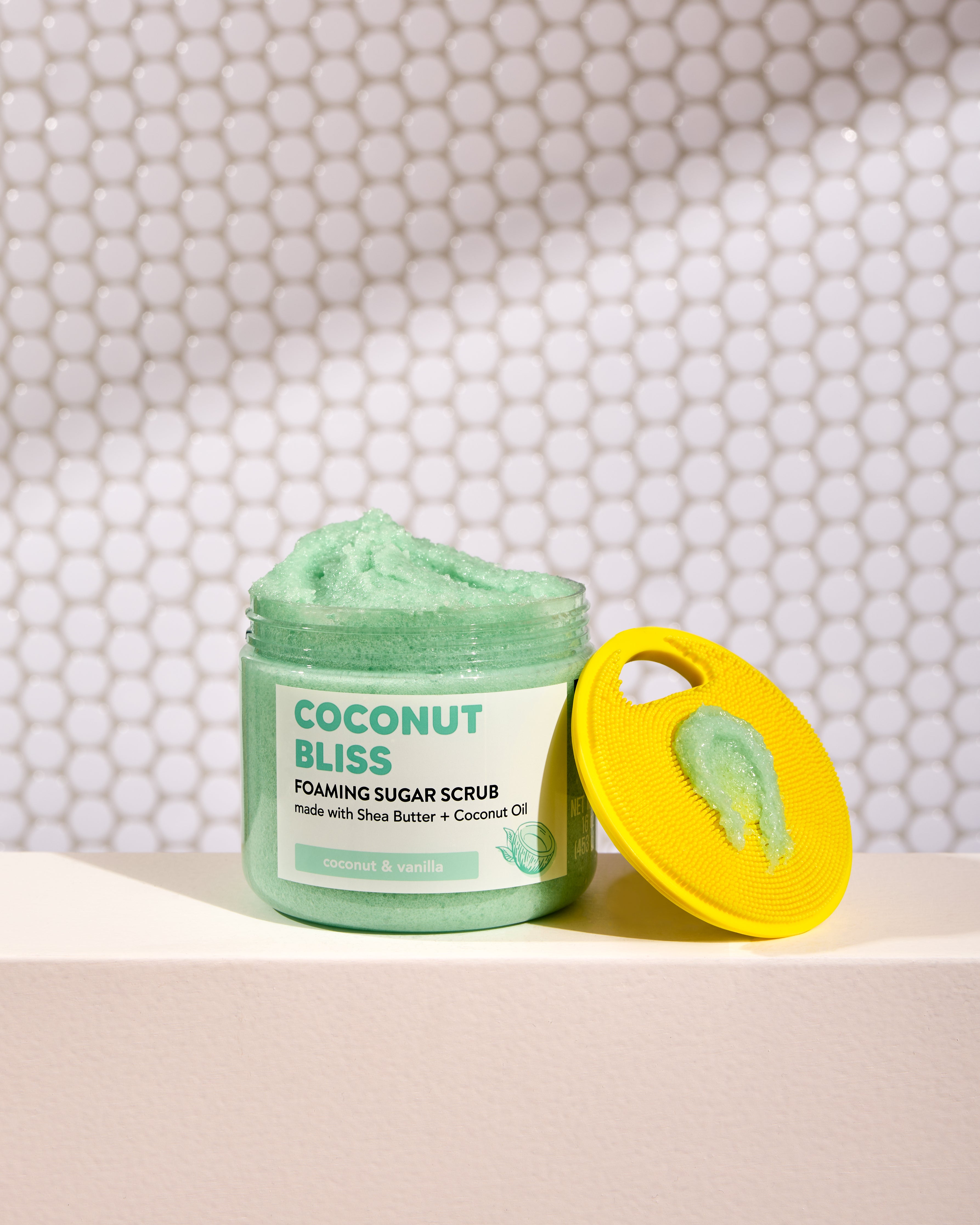 Add foaming sugar scrub directly to the included scrubber and massage in circular motions onto wet skin. Rinse clean and pat dry.
