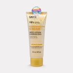 Lotion: Water, Ethylhexyl palmitate, Cetearyl alcohol, Butyrospermum parkii (shea butter), Ceteareth-25, Palmitic acid, Glycerin, Stearic acid, Phenoxyethanol, Glyceryl stearate, Fragrance, Carbomer, Prunus amygdalus dulcis (Sweet almond) oil, Tocopheryl acetate, Caprylyl glycol, Ceramide NP, Simmondsia chinensis (Jojoba) seed oil, Macadamia ternifolia seed oil, Niacinamide, Red 4 (CI 14700), Yellow 5 (CI 19140), Blue 1 (CI 42090).