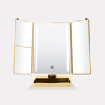 Give your beauty routine a glow-up with our Anniversary Edition Trifold LED Mirror in Gold—a sleek, modern essential for makeup lovers and skincare enthusiasts alike. This versatile mirror features adjustable LED lighting, 1x, 2x, and 3x magnification panels, and a 180-degree swivel, making it easy to get the perfect angle every time.