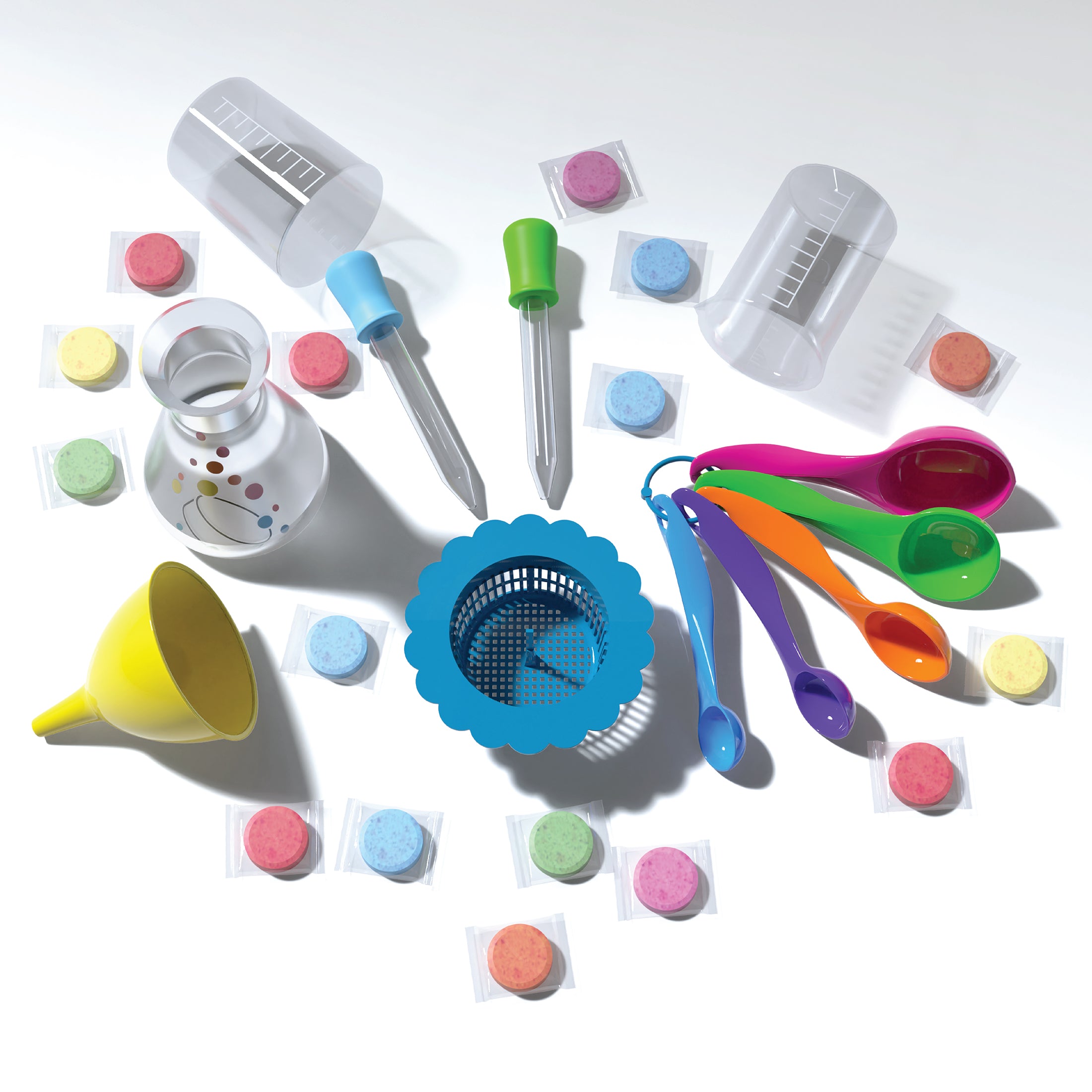 Tools: Use the tools to mix, strain, and measure different colors for endless experiments.